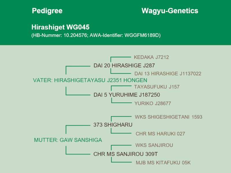 Hirashiget WG045 was born in February 2016. SCD test is AA and Tenderness is 6. He is free of known genetic defects. A calm bull who has already been to the insemination station - there is also semen from him for sale (native and female sesexed!).