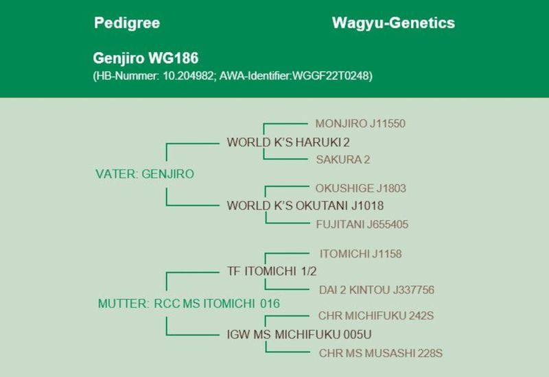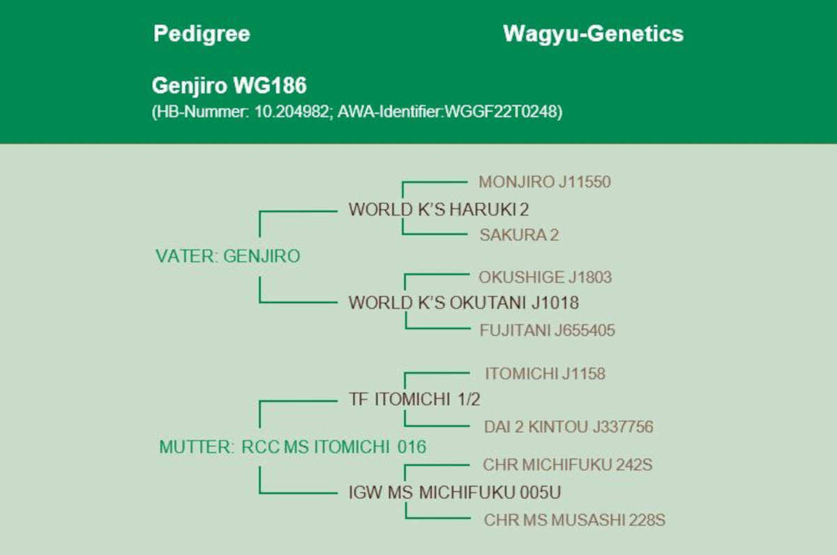 Genjiro WG186 is only one of 7 Genjiro sons worldwide that has a BFI of over $400! He offers outcross genetics for the very commonly used breeding bulls with a very high marbling score and above average marbling fineness. He also has a good frame and is positive in milk. Don't miss out on bringing the rare genetics of Genjiro 186 into your herd - a real asset.