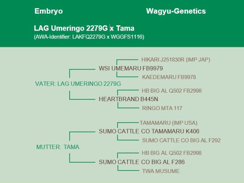 Such a mating is unparalleled in its range of top sires and dams. LAG Umeringo's semen is very rare in Europe. So this is a real opportunity for Akaushi breeders to acquire top genetics.