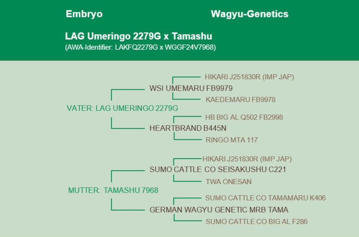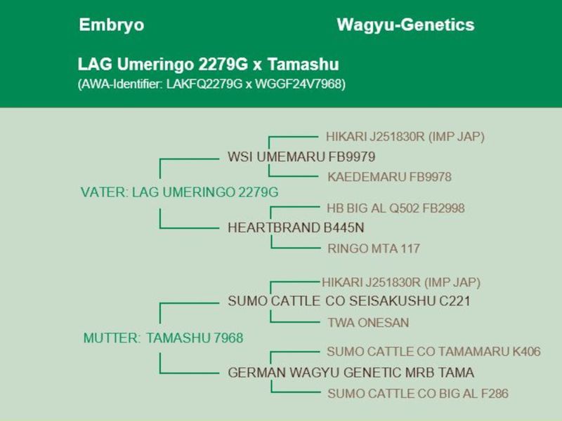 Such a mating is unparalleled in its range of top sires. LAG Umeringo's semen is very rare in Europe. So this is a real opportunity for Akaushi breeders to acquire top genetics.
